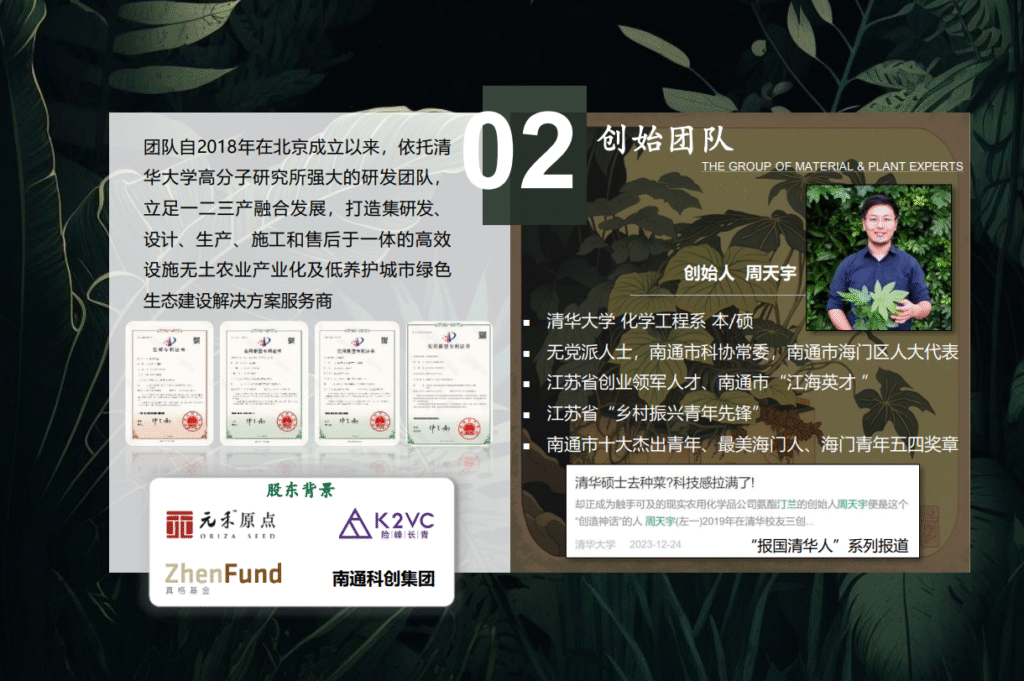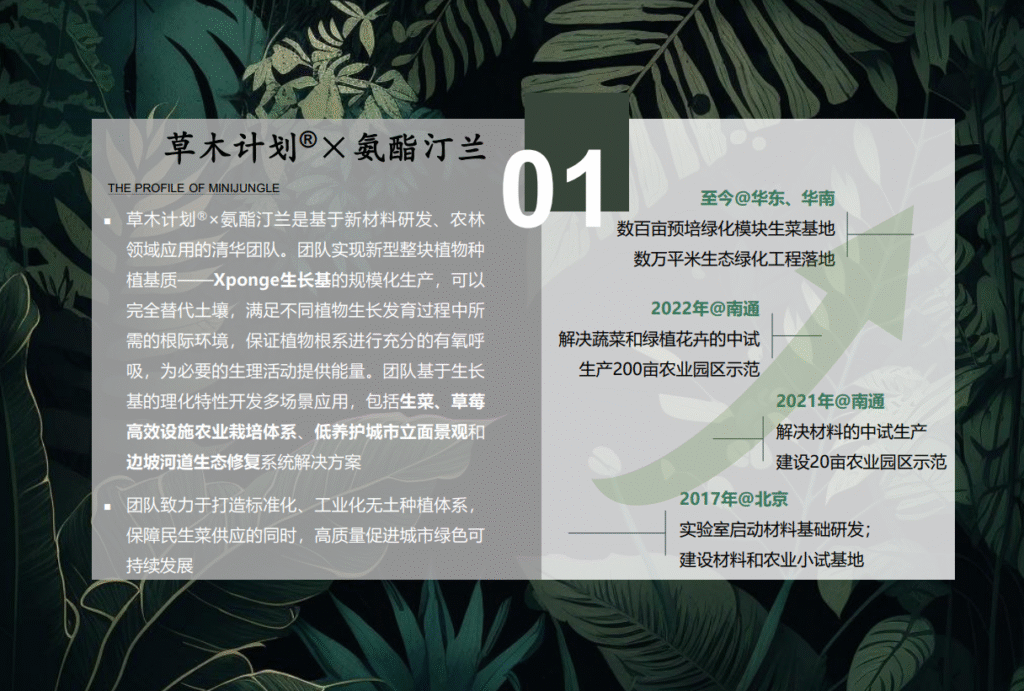 氨酯汀兰(南通)农业科技有限公司,是一家专注于新材料研发和跨领域应用的农业科技公司。自2018年在北京创立以来,依托清华大学高分子研发团队,打造集研发、设计、生产、施工、售后于一体的高效农林产业化方案解决服务商。